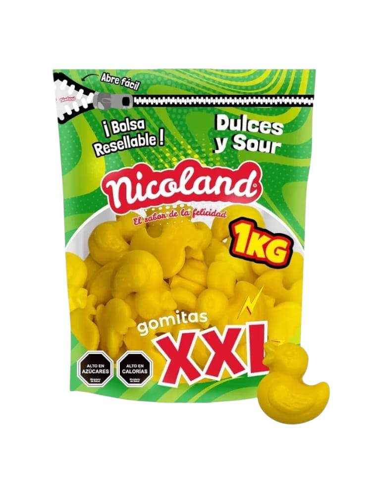 ¡Prepárate para chapotear en una ola de diversión y sabor con las nuevas Gomitas XXL Patitos Nicoland! Te ofrecemos 1 kilogramo de encantadoras gomitas con la adorable forma de patitos de hule, diseñadas para brindarte una experiencia deliciosamente Dulce y Sour.