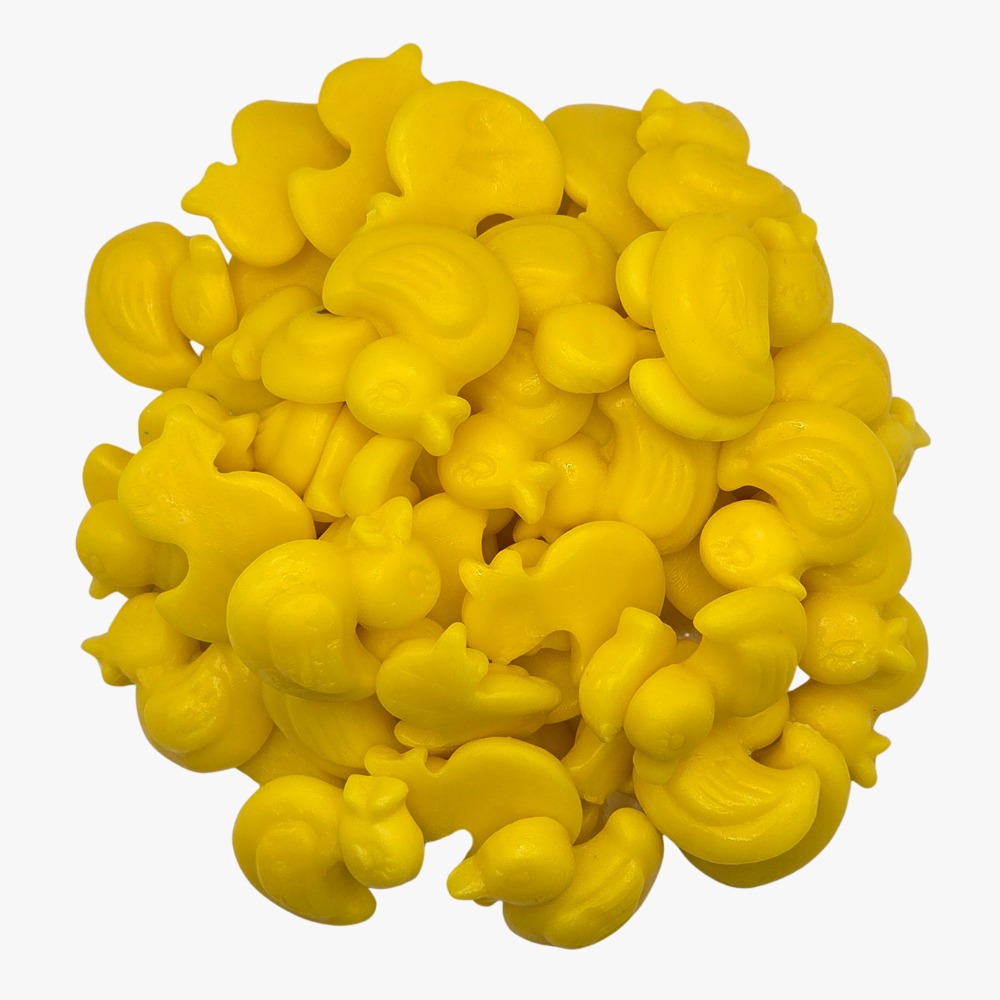 Estos pequeños patitos amarillos son un verdadero encanto para la vista y el paladar. Su figura juguetona y su vibrante sabor afrutado los convierten en el complemento perfecto para cualquier fiesta, una divertida sorpresa para los más pequeños o simplemente para disfrutar de un momento dulce y alegre. ¡Ideales para compartir o para tener tu propia piscina de patitos comestibles!